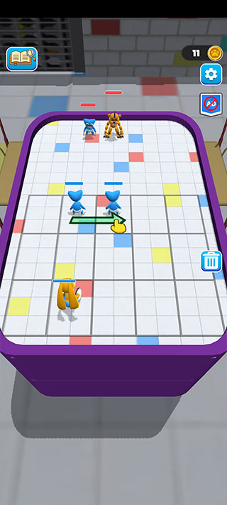 3、获得金币就可以再在战局里加入角色,两个相同的可以滑动到一起,合成新的强力战士!