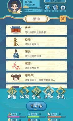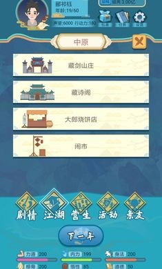 武侠人生模拟器是犟游社发布的一款具有武侠风格的人生模拟游戏。游戏中,文字经营和趣味互动事件能够让玩家体验到诸多乐趣,从简陋客栈到修炼门派,众多富有创意的玩法模式正等待着玩家的探索。高度自由的武侠人生模拟内容都在期待玩家的参与。