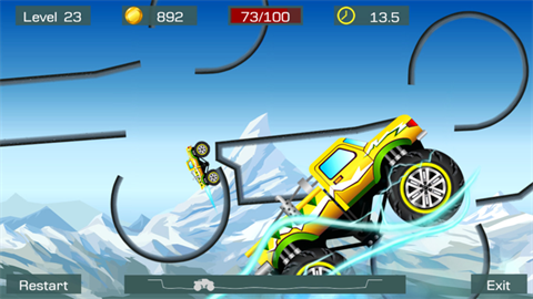 特技大脚车为玩家提供了一种横版的特技挑战模式,在这个游戏中,玩家需要进入全新的关卡,面对众多障碍和复杂路线的挑战。通过指尖的操作来移动和避让,充分展示你的特技技巧,不断冲击更高的分数,最终顺利抵达终点。