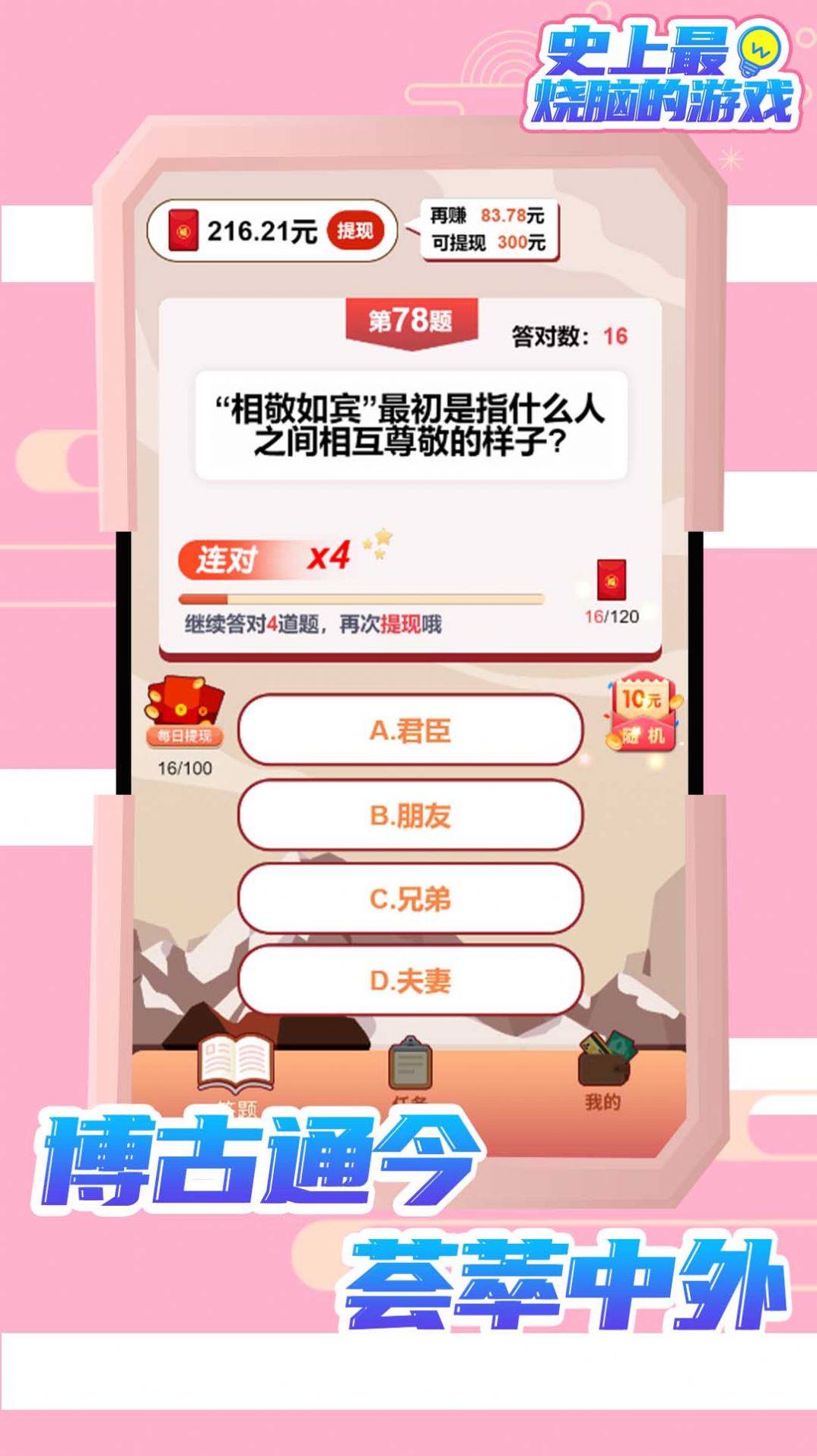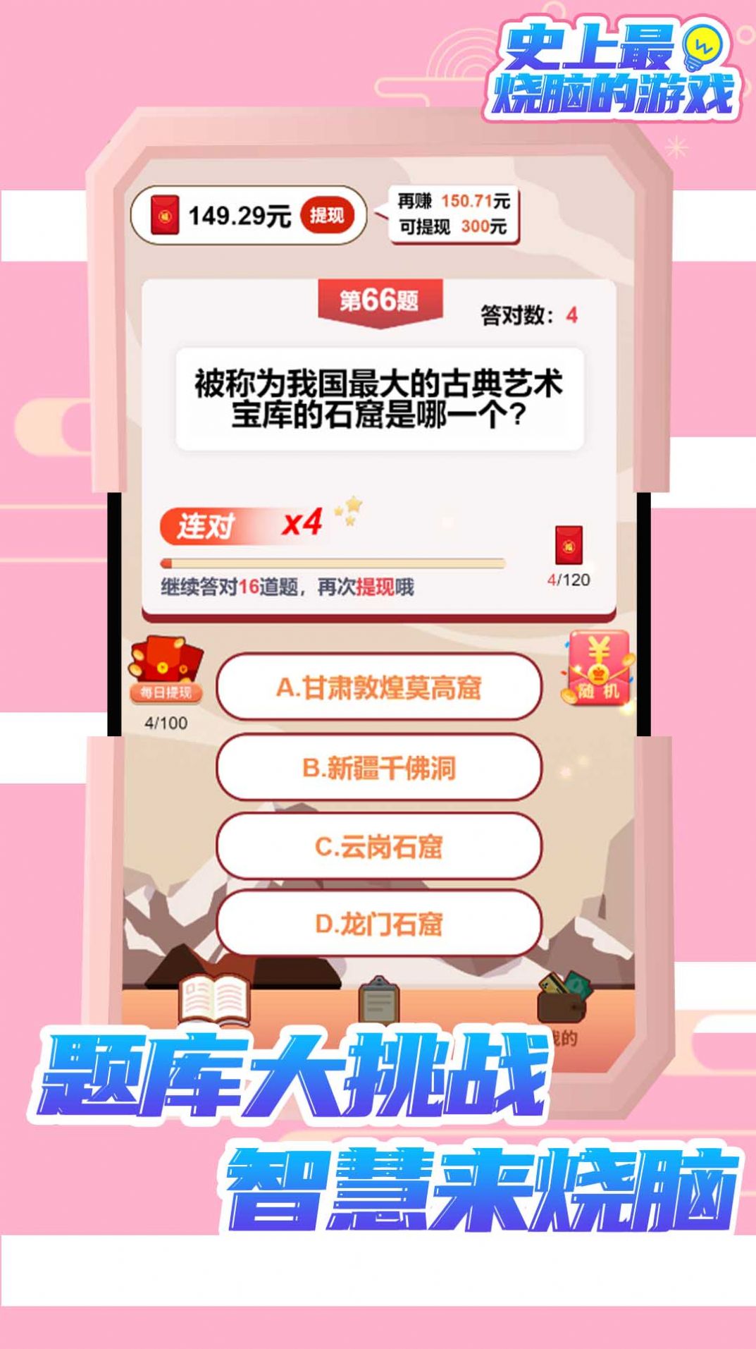 史上最烧脑的红包版是一款近期非常流行且有趣的益智解谜休闲游戏,可在移动设备上免费下载和游玩。这款游戏包含各式各样的谜题,可以提升玩家的认知能力和思维能力。