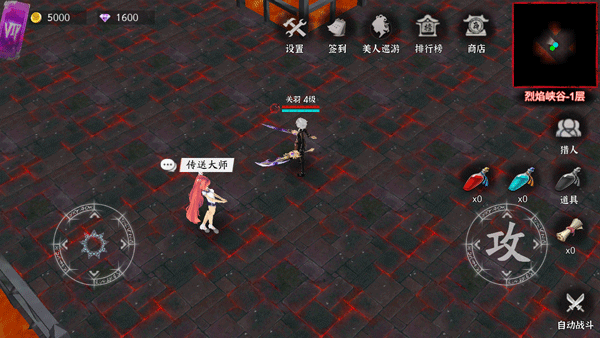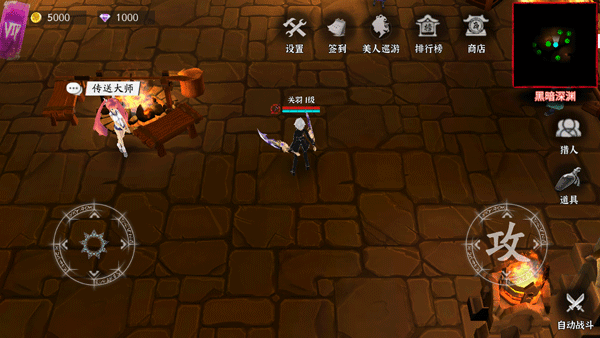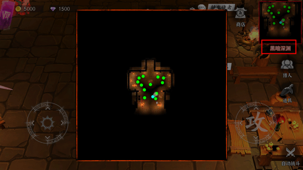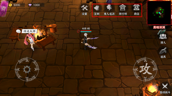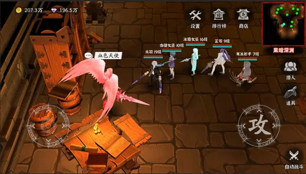 2、左边的转盘控制角色的行动,右边的攻击键可以攻击敌人,还可以开启自动战斗