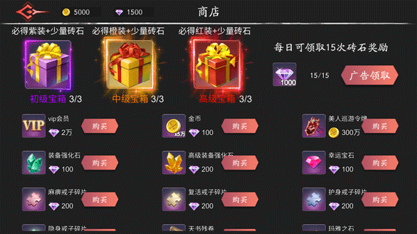 5、在商店中,能够用钻石购买部分装备资源以及金币。