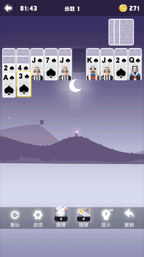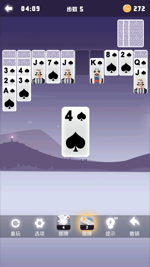 6、也可通过提示、挪牌、猜牌、撤销等操作来帮助你通过关卡!