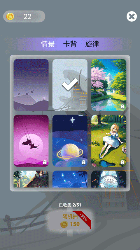 7、玩家还能够在卡背界面使用金币收集更多的情景、背景、旋律哦~