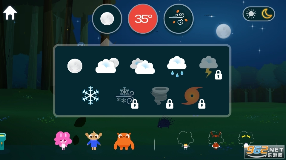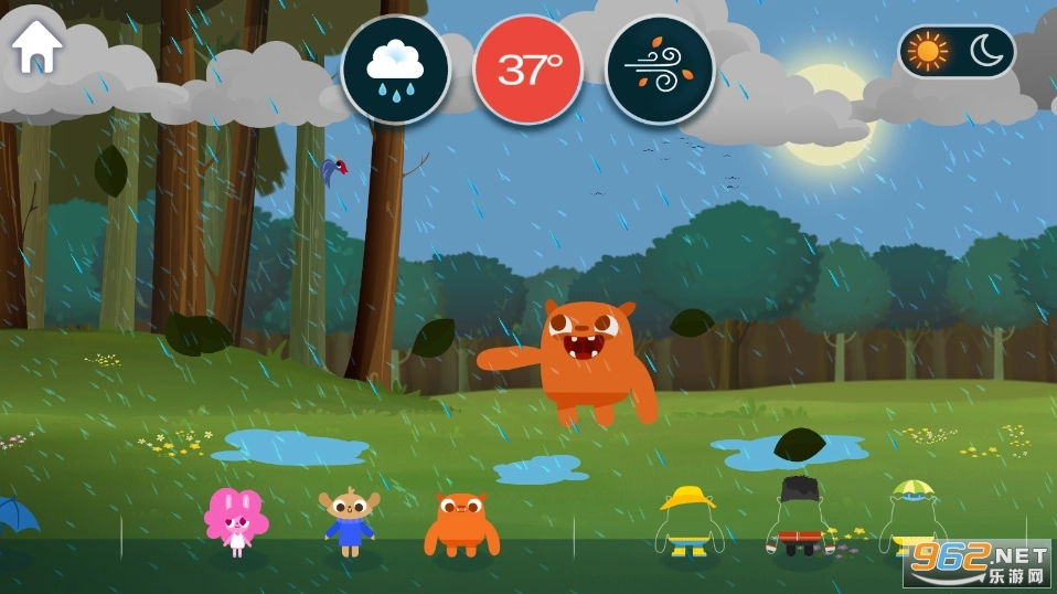 这是一款专门为孩子们设计的早教游戏,玩法简单又自由。游戏里有各种各样的天气状况,还有可爱的角色,孩子们可以在游戏中自由尝试,通过模拟不同天气下动物的感受,来学习生活中关于天气的小常识!