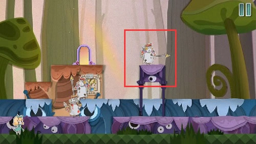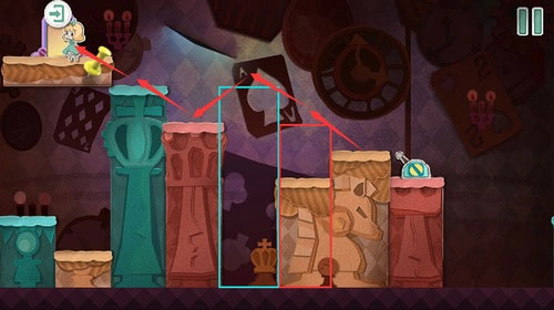 按照图中的指示移动方块,把扑克士兵拦在屏幕的另一边,接着拉动拉杆就能开启时钟塔的入口了。