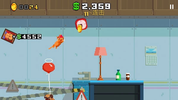 我们的目标是操控这只猫咪,把房间弄得乱七八糟,这样就能获得金币啦。操作方式特别简单,点一下屏幕,小猫就会跳一下;点两下屏幕,小猫就能连续跳跃。不过要注意,小猫最多只能连续跳两次,之后得先落地才能再跳,不然就跳不起来咯。
