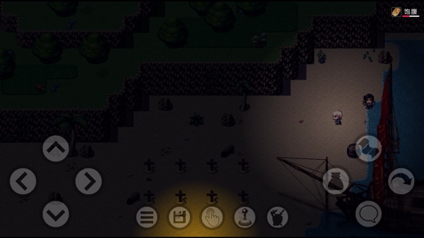 呼出菜单栏后,左侧可控制角色的行走方向,右侧则显示背包内容与任务进度。