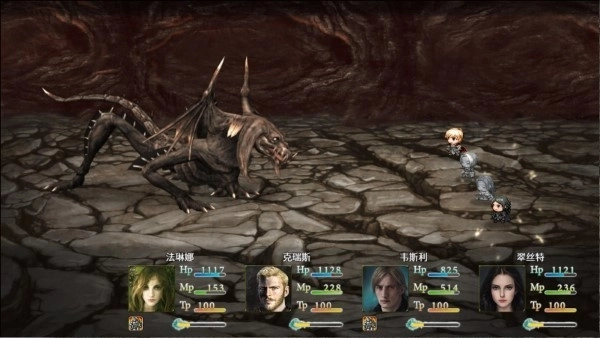 走进矿洞后,剧情随即展开。伊莱念叨着洞里有股怪味,我便开玩笑说他怕是踩到什么脏东西了,结果话刚说完,头顶就扑下来一只大蝙蝠发起攻击。不过这场战斗没什么难度,毕竟我们三个人对付一只怪物,随便打打就赢了。