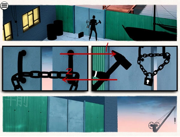 第四关:要对所有画面位置进行调整,依次达成“桥”与“锁”这两个目标。