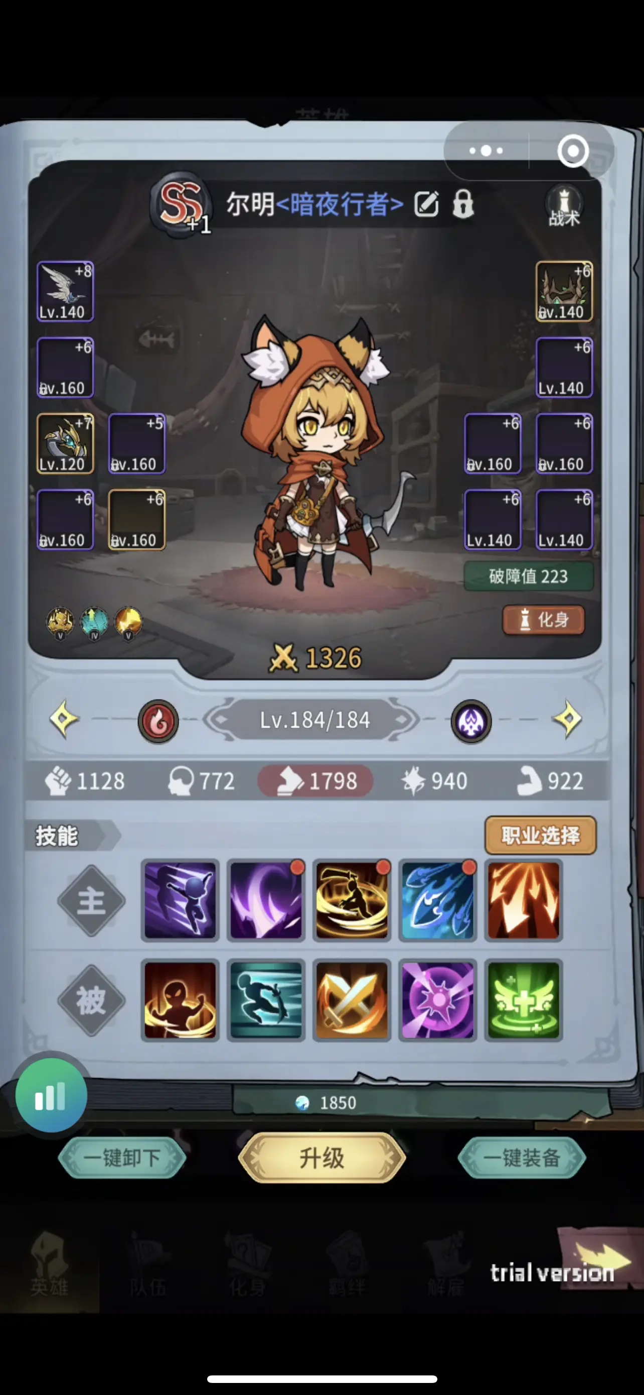 这个英雄对配置要求不高,开局自带的皮肤就属于化身类型(因为有吸血效果还很肉,所以不太依赖资源)