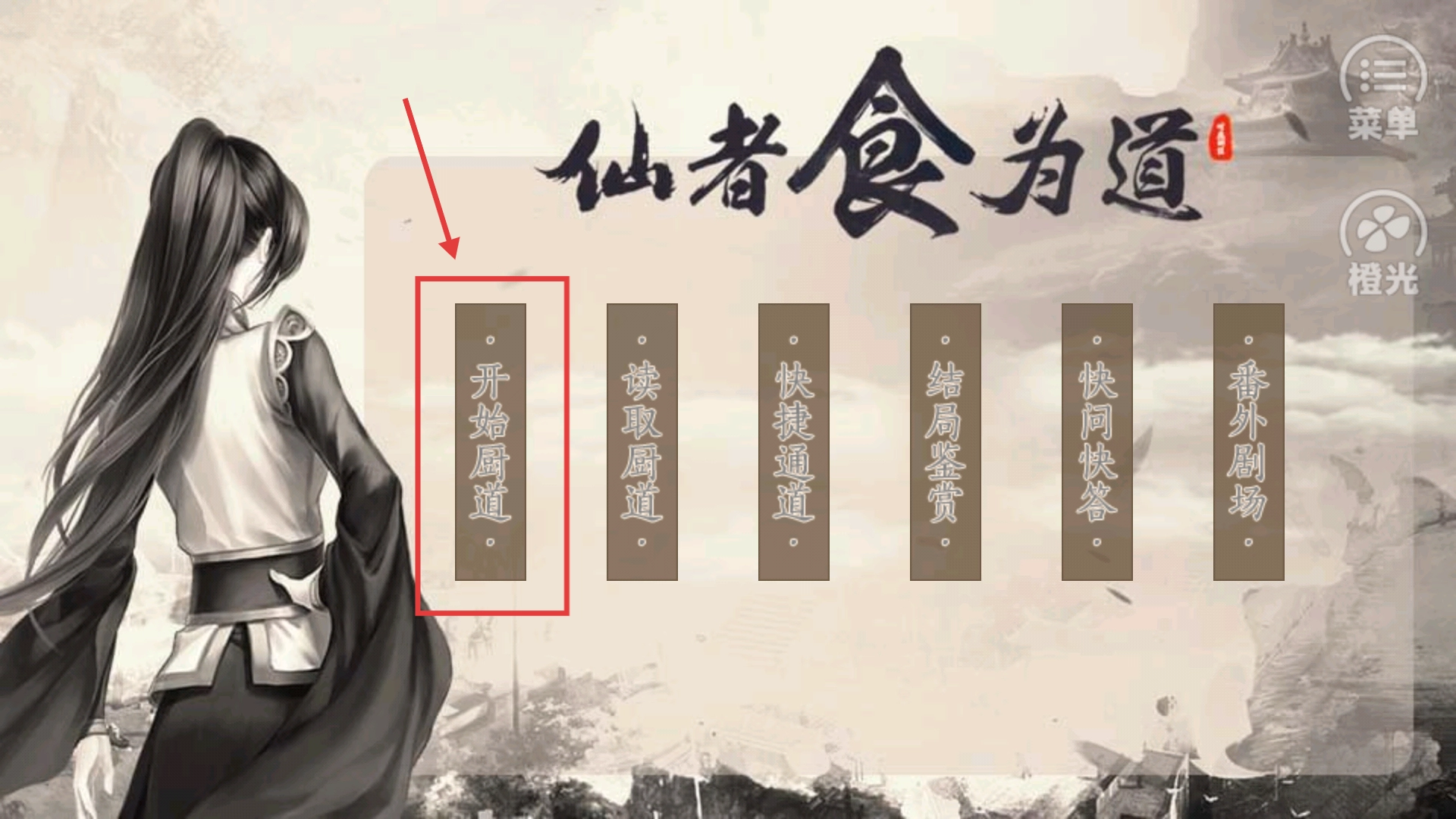 首次进入游戏时,点击【开始厨道】按钮即可开启美食冒险之旅;后续游玩可通过菜单入口继续游戏进程,收集各类食材还能助力提升厨艺水平。