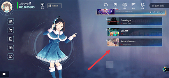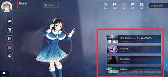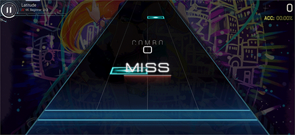 这款游戏的玩法和节奏大师相近,玩家要点击下落的方块,长条方块需长按操作,点击时机越靠近目标线得分就越高,要是漏点了就拿不到分数。