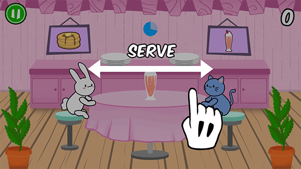 滑动屏幕将食物送到动物手中,谁先拿到即可过关。