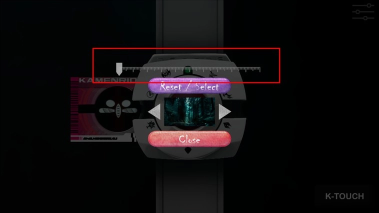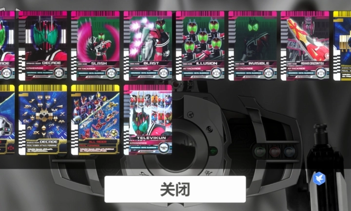 2、开启机关后会出现骑士卡,通过左右滑动这个小窗口,能够浏览到电视剧里出现过的全部骑士卡,从中挑选一张即可完成变身。
