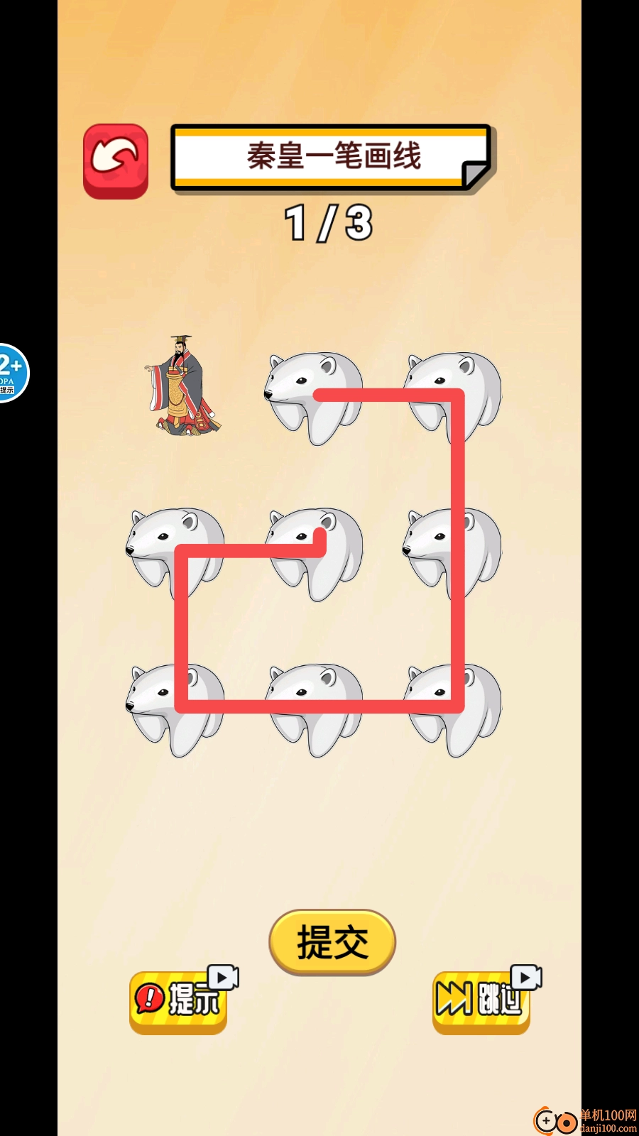 5、画线游戏里有北极熊和秦始皇这两个元素,得思考怎样才能把所有北极熊都连接起来。