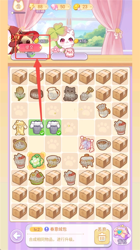5、合成获得了目标衣服就可以提交,即可获得金币。