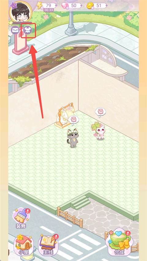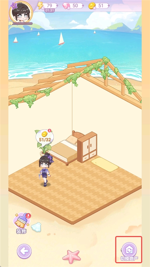 7、进入小屋后,点击【切换地产】按钮,即可将主页展示的单间切换为双层房型。