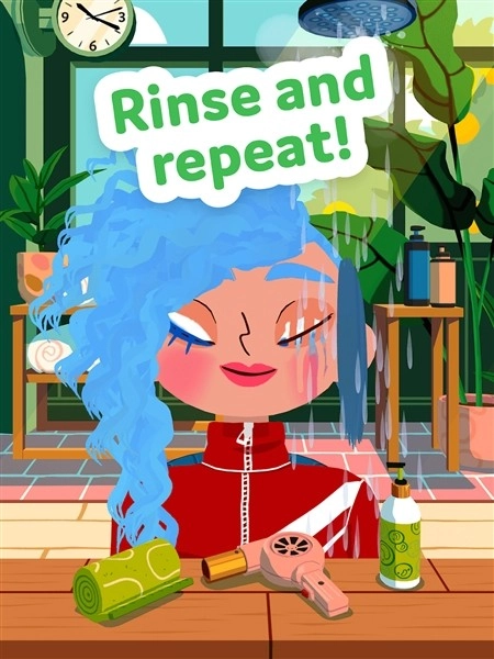 为角色挑选适配的洗发水来清洁头发,洗发后用毛巾擦干并吹干,角色脸上的彩绘和彩妆会慢慢褪去,轻松恢复清爽的素颜状态。