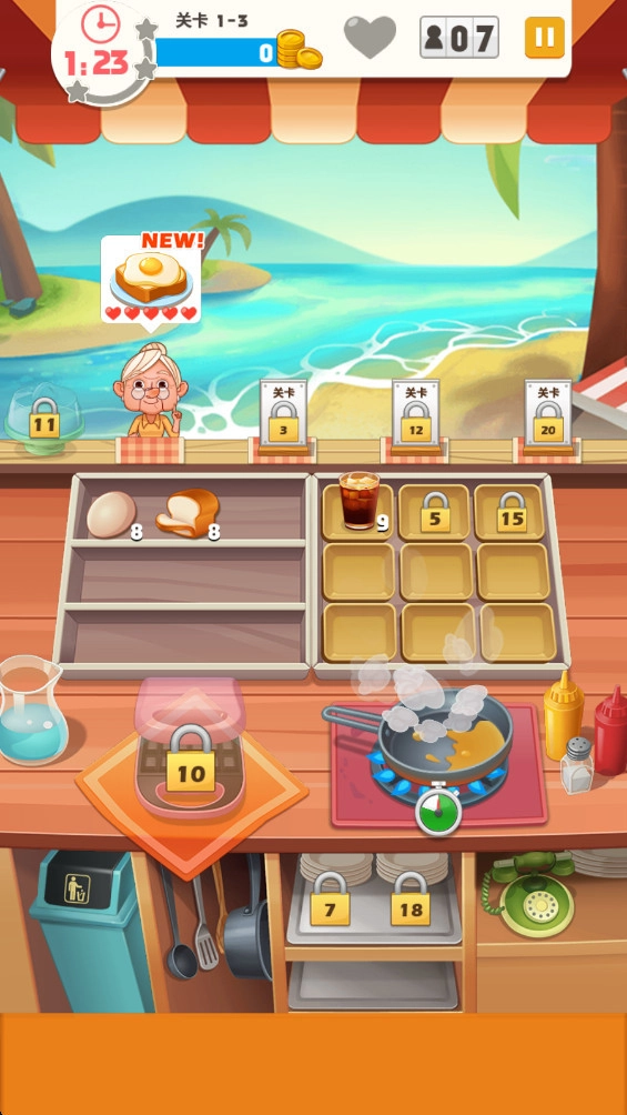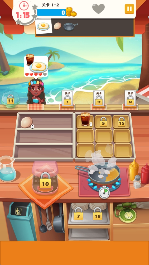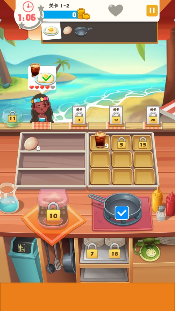 5、完成关卡需要在指定时间内达成所有顾客的需求,通关之后会依据订单的完成情况以及顾客的满意程度来发放丰厚的奖励,这些资源能够用来解锁新的菜谱、提升厨具的等级或者扩大餐厅的规模。