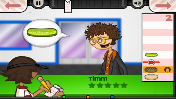 4、完成操作后,把这张小票拖到订单上方,接着将汉堡递给顾客。