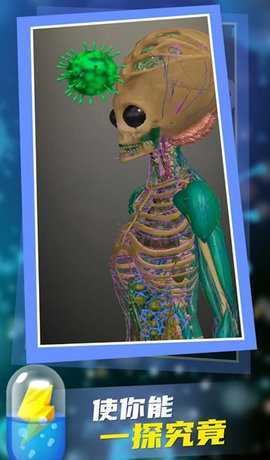 1.以骨架为起点,逐步解锁内脏、神经、肌肉、皮肤等结构,遵循系统顺序推进,过程中消耗细胞与资源。