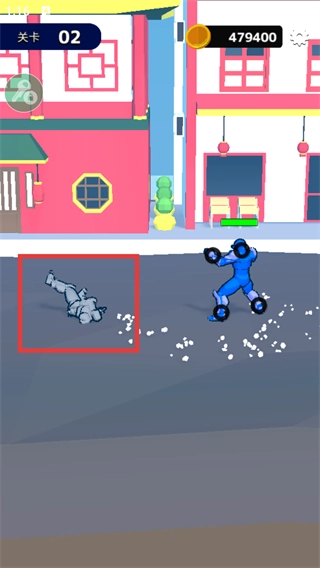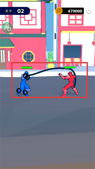2、操控经过强化的蓝色角色,借助画线的方式发动攻击,以此不断消耗红色角色的绿色血条,与此同时还要避开对方的反击。