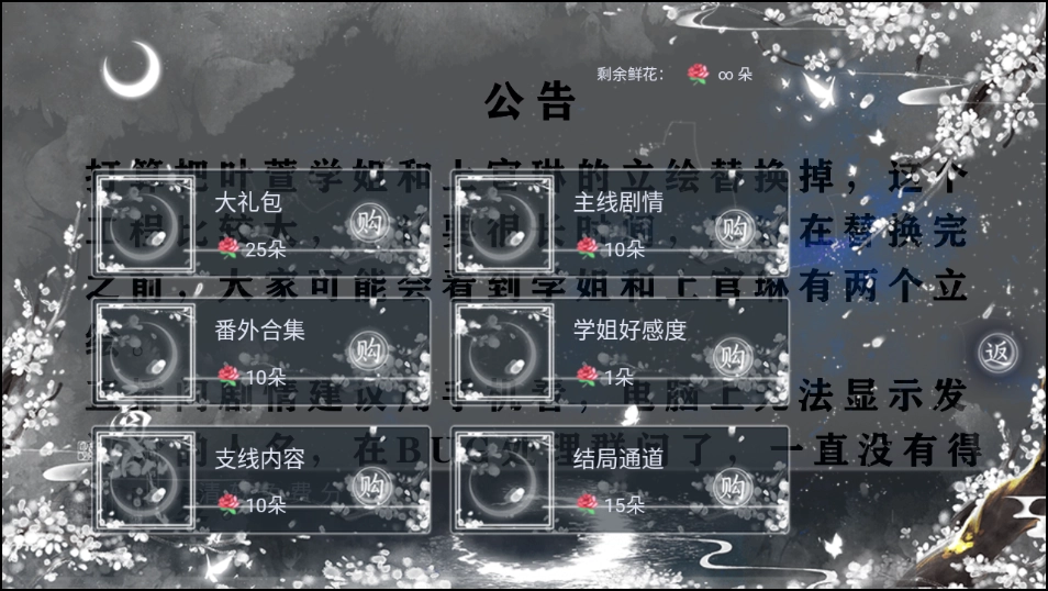 【备注1】非短支线剧情:给女主播送不同的礼物导致的,剧情差不多,但某些选项可能会刷出好感度。