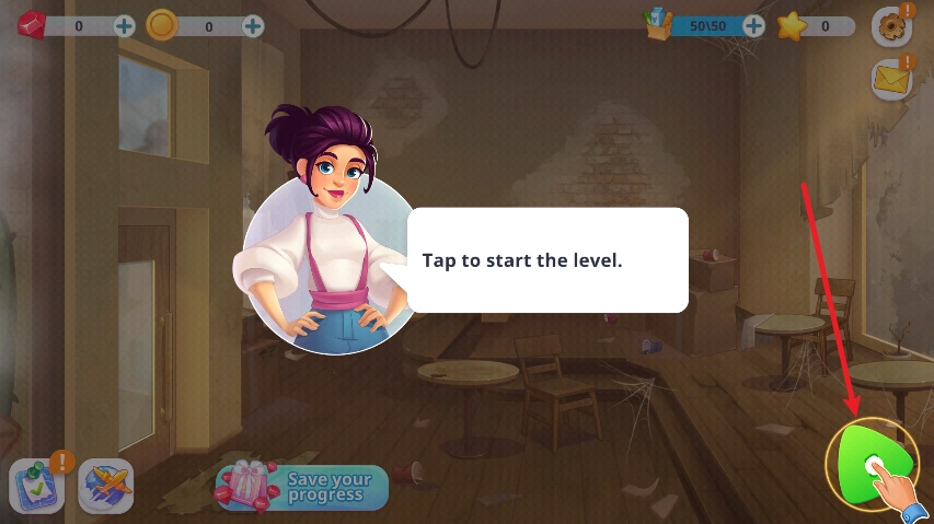 1、玩家进入游戏后,第一步是点击右下角的绿色按钮来选择关卡。