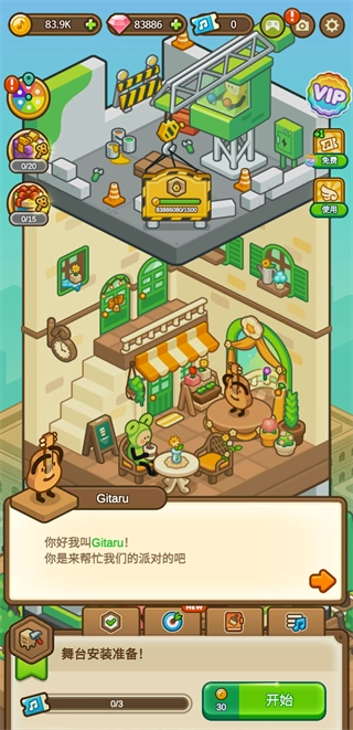 4、点击“开始安装”按钮,即可消耗音乐票来安装派对舞台。