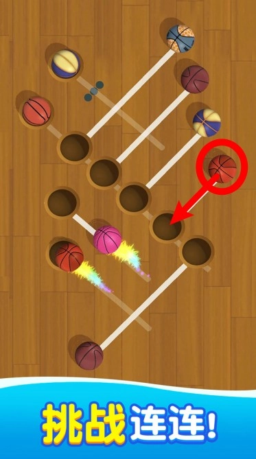 1. 滑动篮球使其顺利落入洞中,提前观察并规划路径,避免球体卡住或误入错误洞口,从而顺利完成关卡挑战。