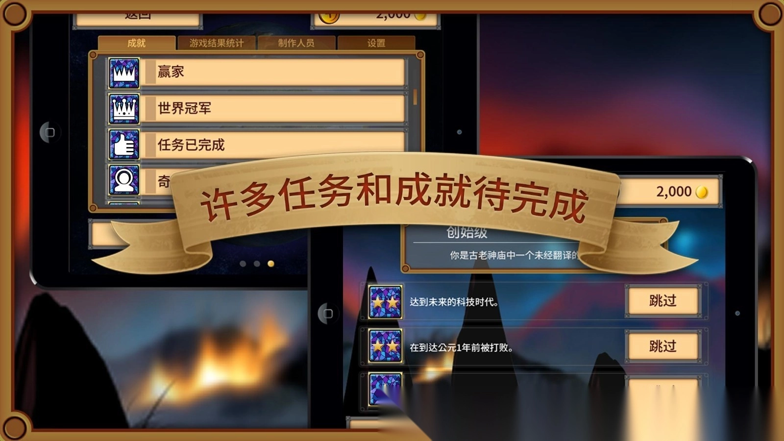 2)任务与成就:游戏内设置了数十个任务、成就以及可解锁的各类内容,像新文明、球体形态、天空景象和天气效果等都包含其中。