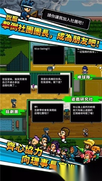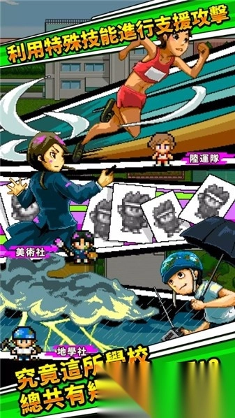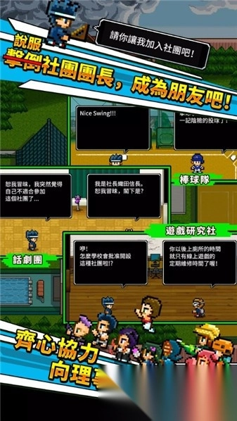 2. 核心玩法为凭借武力击败学长,以强制方式加入社团,并和社团成员建立友好关系。