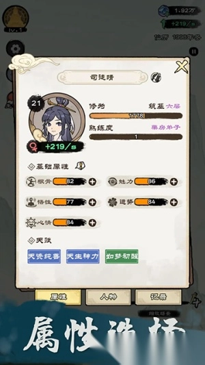 1.选用放置型的修仙模拟玩法,角色能够自动修炼以获取修为,玩家仅需协助角色挑选成长的方向就行。