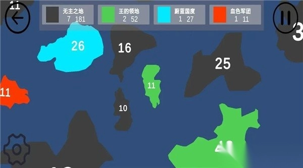 2. 带有色彩的王国具备反击能力,而黑色板块属于无主区域,可优先放心占领。