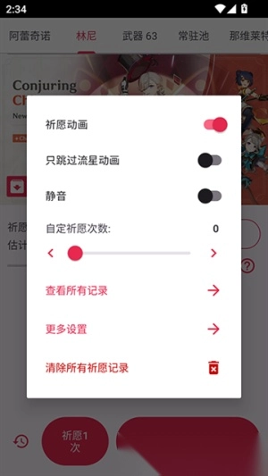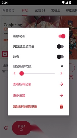 2. 支持玩家对各类设置进行自定义操作,像跳过召唤动画、开启静音模式、设定祈愿次数、查阅历史记录等功能均包含在内。