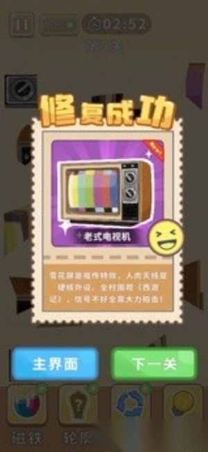 2)成功修复完成,进行下一关闯关。