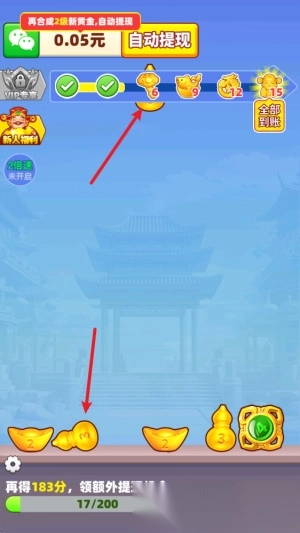 福运亨通游戏沿用经典合成玩法,你能在游戏里不受任何规则限制地自由合成各类黄金,让地图上的黄金经你之手都变得价值不菲,完成等级与价值的进阶。随着关卡陆续解锁,你会积累起越来越多的财富,慢慢成为地图中的财富巨头,实现一夜暴富、躺平享福的发财心愿。