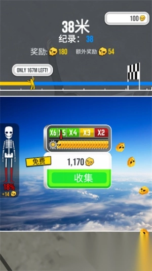 2. 每次游戏结束后,系统都会依据本次的飞行距离和骨折程度进行评分与金币结算,这让我每次都得集中注意力去控制指盘上的力道。