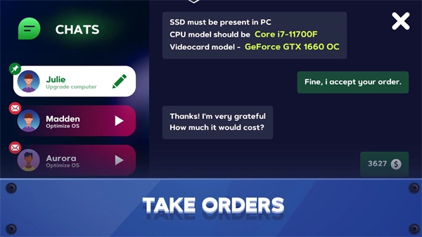 1. 真实装配模拟:游戏内提供大量高度还原的电脑硬件模型,玩家能够选购与收集各类配件,像CPU、显卡、主板、内存等,依据客户的具体要求进行定制,组装出性能各不相同的电脑主机。