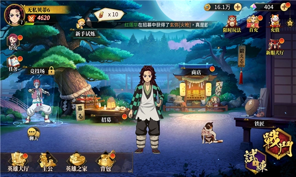 这款鬼灭手游轻松休闲,主打卡牌收集与养成玩法!开局就能享受十连抽福利,SSR角色直接免费赠送!