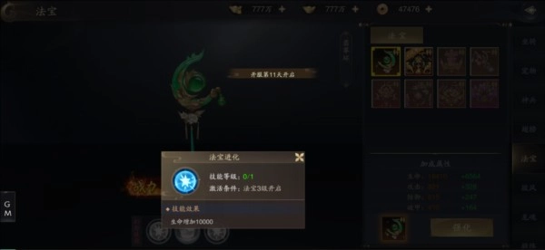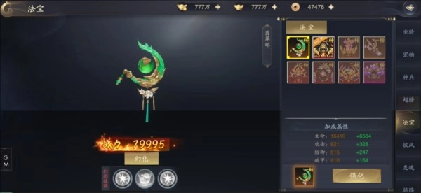 在各种玩法里,我们也能得到【法宝升级丹】,用它来提升法宝等级。法宝等级上去后,不仅能解锁并提高法宝技能等级,还会给玩家增加不少属性数值,战力也会跟着蹭蹭往上涨~