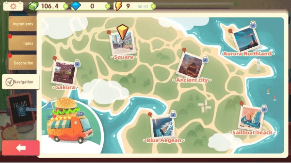 3、驾驶你的餐车周游世界,解锁全新的城市与地标,承接各式各样的烹饪任务。