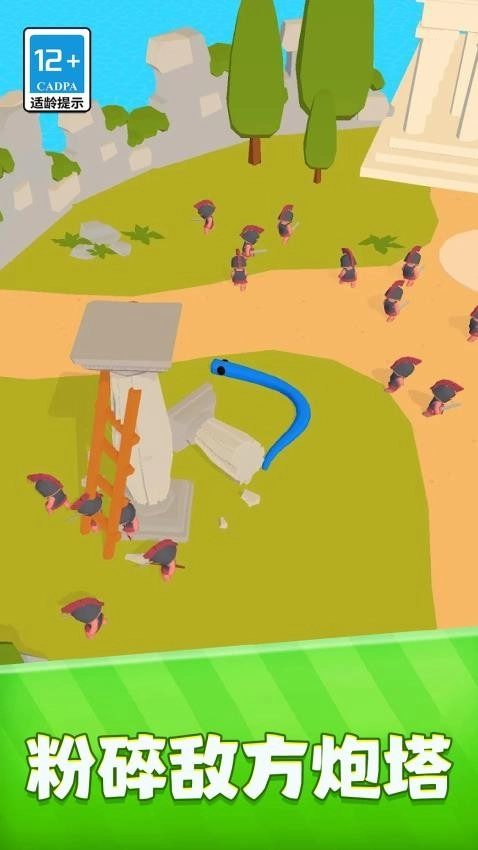 模拟贪吃蛇大作战是一款画风独特的休闲游戏,玩家在游戏里能够操控一条贪吃蛇去围攻火柴人,火柴人会持续地奔跑移动,玩家需要让贪吃蛇依据不同的地形调整姿态,把它们击败。