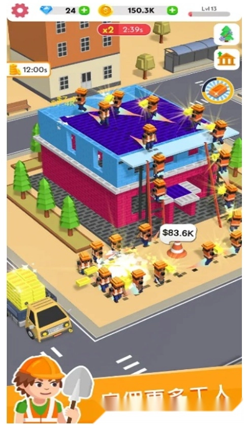 玩家可以招募不同类型的员工,轻松获取大量金币,进而建造各类建筑。