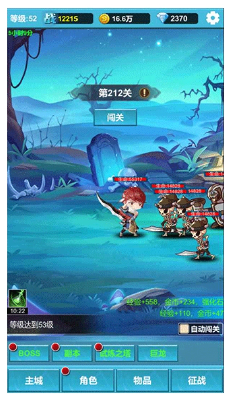 4、挂机放置的玩法设计十分贴心,能彻底解放玩家的双手,让整个战斗过程都能轻松体验。到了后期,玩家只需持续升级,就能更有底气战胜强大对手,自由地闯荡关卡。