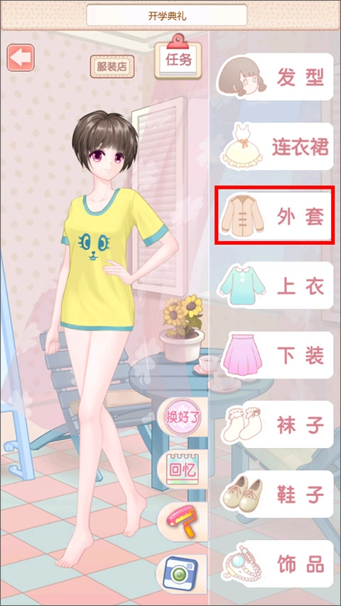 4、进入换装环节后,玩家需依据主角即将出席的场合,从外套着手为其进行搭配。
