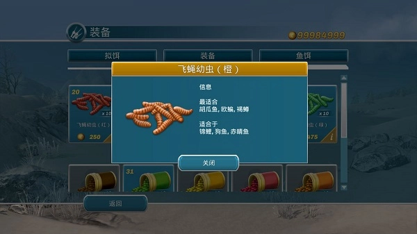按照指引,选用橙色飞蝇幼虫作为诱饵。