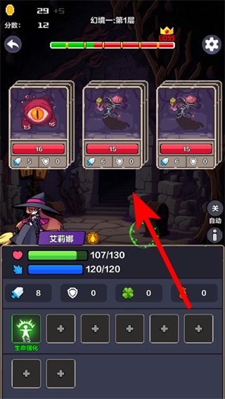 4、在幻境一:第1层界面点击敌方怪物卡牌,消耗资源发起攻击以推进关卡。