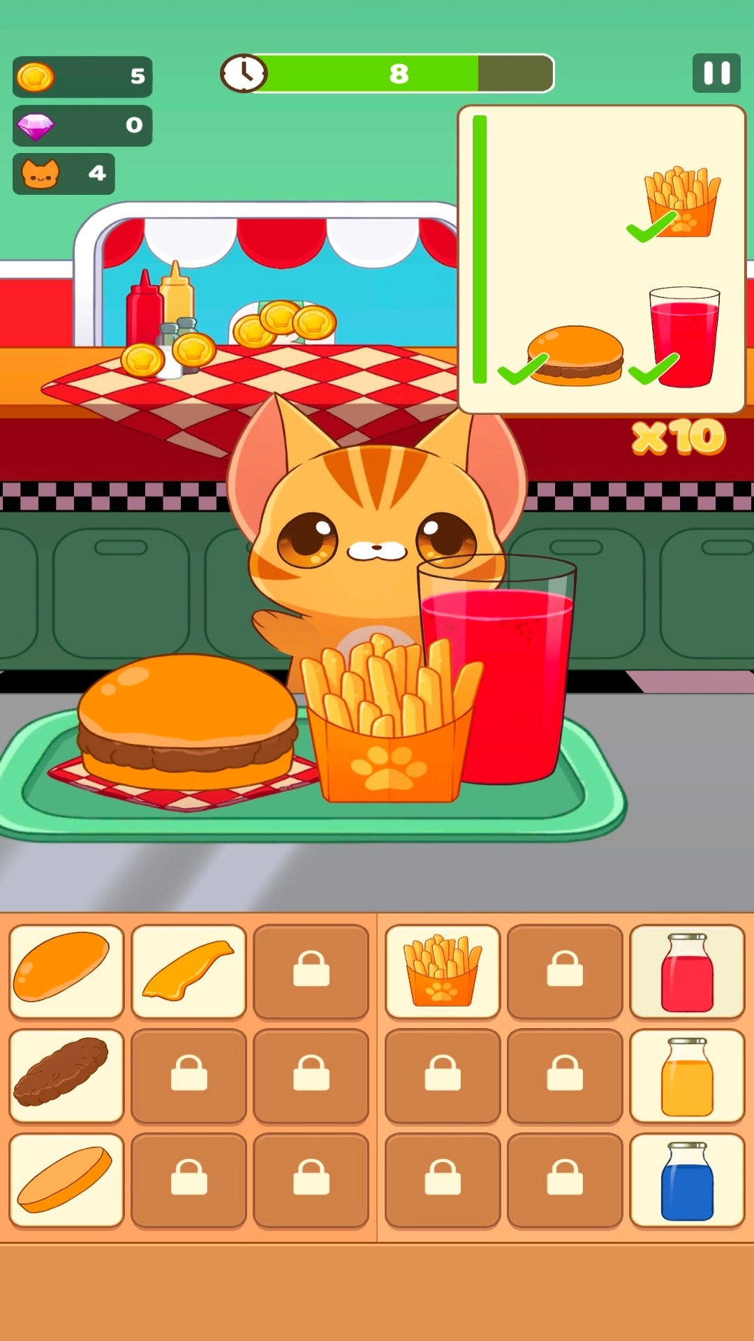 3.资源经营:科学规划金币投入以升级厨房设施,提高餐品制作速度;解锁全新食材来丰富菜品选择,增强对顾客的吸引力。